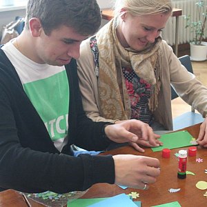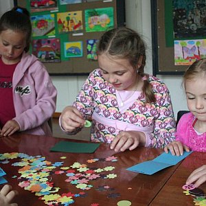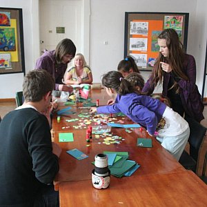 kilkanaście osób wzięło udział w otwartych zajęciach czytelniczo-plastycznych "Czytanie jest sztuką - Laurka dla Mamy", które odbyły się w Młodzieżowym Centrum Kultury.