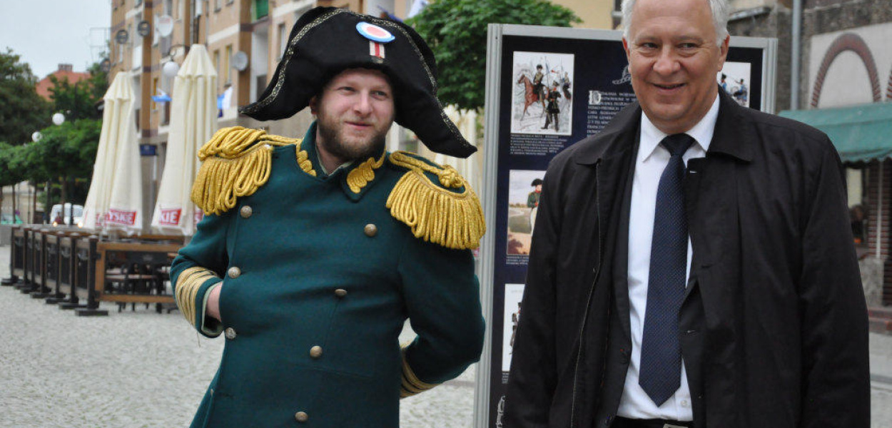 Dokładnie 200 lat temu nasze miasto odwiedził cesarz Napoleon Bonaparte. Przebywał w Legnicy dwukrotnie, 27-29 maja oraz 5-6 czerwca 1813 roku. Właśnie dziś, tj. 28 maja cesarz pojawił się u nas ponownie. Razem z prezydentem miasta Tadeuszem Krzakowskim, spacerował po Rynku, oglądając kamienicę, w której nocował 200 lat temu. Mowa o budynku w Rynku, w którym aktualnie mieści się kwiaciarnia. Podobno dotrzymywała mu wtedy towarzystwa piękna niewiasta. Być może dzisiejszej nocy sytuacja się powtórzy...