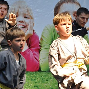 Na początku wystąpił Mistrz Jan, pokazując maluchom podstawowe chwyty kung-fu. Zapraszał na zajęcia do klubu Condizione oraz do Szkoły Podstawowej nr 1 w Legnicy. Na scenie w galerii zaśpiewały młode solistki. W ich repertuarze znalazły się piosenki Natalii Kukulskiej, m.in. "Puszek Okruszek". Temperatura wzrosła, gdy na horyzoncie pojawiła się Aleksandra Lesiak tańcząca energetyczną zumbę. Pomagały jej koleżanki, które uczą się tego radosnego tańca w klubie Condizione Health&Fitness. Młodym imprezowiczom przez cały dzień towarzyszyli współcześni rycerze, klauny a także wolontariusze TPD, zachęcający do spróbowania swoich sił w loterii fantowej. O godzinie 17.30 nastąpiło rozdanie nagród w konkursie. Do wygrania był między innymi rower górski i piłka z autografem Roberta Lewandowskiego.