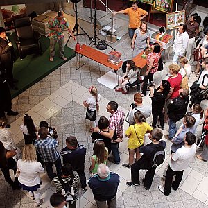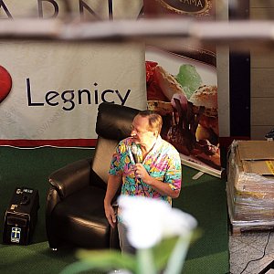 Znany dziennikarz, podróżnik, publicysta i pisarzWojciech Cejrowski gości w Galerii Gwarna. Tłum legniczan z zainteresowaniem przysłuchuje się jego opowieściom.