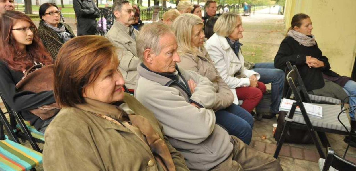 Cecylia Malik, Sławek Czajkowski i Michał Mioduszewski opowiadali w parku o ulicznych projektach artystycznych. Pomysłodawcą wykładów w ramach projektu ONN – Obywatel Nikomu Nieznany jest Fundacja Sztuka dla Ludzi.