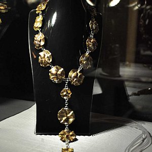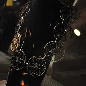 Ekspozycja podzielona została na dwie części. Pierwszą stanowiła biżuteria, która dodaje wdzięku modelkom na wybiegach mody. W tej grupie znalazły się sporych rozmiarów kolie wypełnione szlachetnymi kamieniami. Z kolei w drugiej części wystawy przeważały bransolety, dużo lżejsze naszyjniki, kolczyki i pierścionki. Większość biżuteryjnych elementów wykonana była z miedzi pokrytej srebrem i złotem.