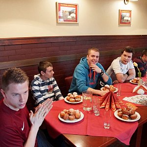 Warto zaznaczyć, że pączki były wyjątkowe, smażone w głębokiej patelni według przepisu naszych babć. Miękkie pączki z różanym nadzieniem i cukrem pudrem pojawiły się na talerzach naszych ośmiu zawodników. Rywalizacja rozpoczęła się punktualnie o godzinie 16:15.[FOTORELACJA]7742[/FOTORELACJA]