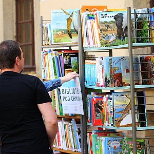 Na dziedzińcu Akademii Rycerskiej zorganizowano także małą bibliotekę. - Zapraszamy do Biblioteki pod chmurką, można zobaczyć nasze zbiory o tematyce przyrodniczej i ekologicznej, dzieci mogą też pobrać j zobowiązanie i zapisać się do nas – zapraszała kierownik Ekobiblioteki.