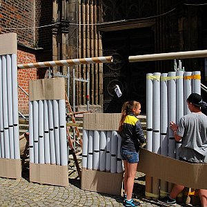 Uczniowie kilku legnickich szkół biorą udział w projektowaniu i budowaniu organów. Akcja odbywa się na Placu Mariackim, przy Kościele Mariackim.