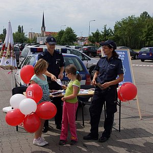 Przy stanowisku policjantów z zainteresowanie słuchały o tym czego powinny się wystrzegać podczas letniego wypoczynku. Chętnie kolorowały przygotowane obrazki tematycznie związane z akcją „Bezpieczne wakacje”. Każdy z małych uczestników imprezy otrzymał drobne prezenty od hipermarketu.