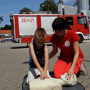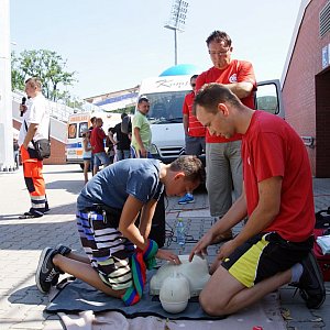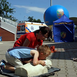 Pokaz odbył się w przerwie meczu w pobliżu sektora rodzinnego. Strażacy zaprezentowali w jaki sposób dostają się do wnętrza samochodu, który uległ wypadkowi i wydobywają z niego ranną osobę. Ratownicy pokazali w jaki sposób należy udzielić rannemu pierwszej pomocy.