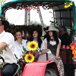 Kiedy już wszyscy dostali swój kawałek chleba, zabawa rozpoczęła się na dobre. Sceną zawładnęły zespoły folklorystyczne. Były przyśpiewki i najpopularniejsze ludowe melodie i tańce. Imprezie towarzyszyła wystawa rękodzieła artystycznego, warsztaty szydełkowania, wyrabiania bibułowych kwiatów i młócenia cepami. Mieszkańcy gminy, zwłaszcza panie mają się czym pochwalić, pod ich sprawnymi palcami powstają najpiękniejsze bibułkowe kwiaty, koronkowe serwety i obrusy. Gospodynie częstowały swoimi specjałami, które cieszyły się jak zawsze wielkim powodzeniem. Nie zabraknie atrakcji dla dzieci i dla dorosłych. Impreza dożynkowa zakończyła się zabawą ludową pod gołym niebem.