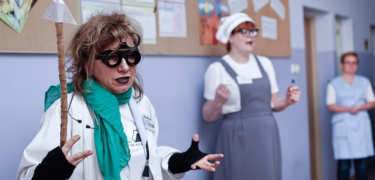 Pod koniec lutego w miłkowickim gimnazjum odbyła się pierwsza tego typu akcja, którą przeprowadziły aktorki Teatru Modrzejewskiej, Katarzyna Kazimierczak i Joanna Gonschorek. Aktorki wcieliły się w role szalonej prof. Literatury oraz siostry Liryki, szkolna stołówka zmieniła się natomiast w gabinet badań lekarskich. Kontrolę sprawności literaturoznawczej pod okiem „białych fartuchów” przeszły trzy ostatnie klasy gimnazjalne, łącznie 43 uczniów.