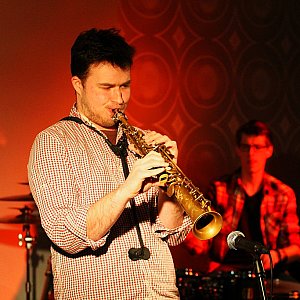 Jarek Dąbrowski w międzyczasie skończył uczelnię muzyczną i dziś jest znakomitym saksofonistą. Legniczanom znany jest z występów z formacją Kłos & Dąbrowski Project. Niewątpliwym sukcesem jest dla młodego muzyka koncertowanie i nagranie płyty z Mike Russellem. Ich występy również mogliśmy podziwiać podczas koncertów w akademiku PWSZ. Tym razem jednak do wspólnego jammowania przyłączyli się legniczanie, jedni ze swoimi instrumentami, inni wspomagając formację wokalem. Doskonale bawili się jazzem nie tylko oni, publiczność wspomagała ich oklaskami i nieśmiałą wokalizą.