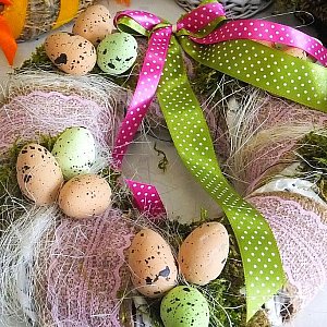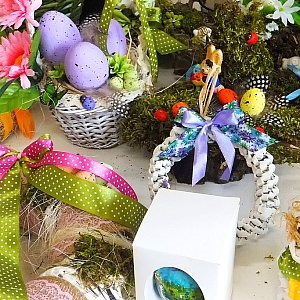 Stroiki świąteczne i kolorowe pisanki można można kupić w holu budynku Starostwa Powiatowego. Świąteczne dekoracje przygotowali terapeuci i podopieczni DPS w Legnickim Polu.