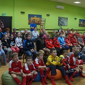 Spotkanie, na którym zjawiła się bardzo liczna grupa maluchów i ich rodziców, nie skończyło się na czytaniu. Jak na sportowców przystało wzięli udział w konkursach sportowych, popisywali się również wiedzą na temat piłki nożnej i drużyny „Miedzi Legnica”. Odpowiedzi były premiowane nagrodami, związanymi rzecz jasna ze sportem.