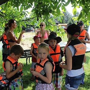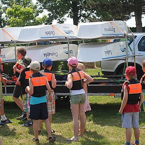 Po krótkich zajęciach teoretycznych dzieci w wieku 6 – 12 lat próbowały swoich sił na wodzie. Do dyspozycji miały nowiutkie żaglówki Optimist.