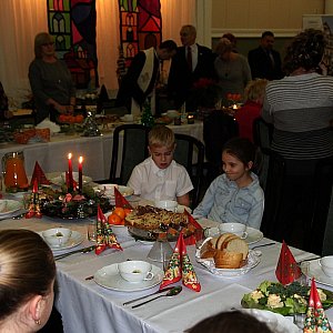 Spotkanie jak zawsze rozpoczęło się wspólną modlitwą i błogosławieństwem. Zebrani przełamali się opłatkiem i zasiedli do kolacji wigilijnej.