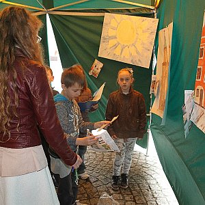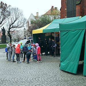 Uczniowie legnickich szkół spotkali się w Rynku z kominiarzem oraz dowiedzieli się, jak można uniknąć skażenia atmosfery.