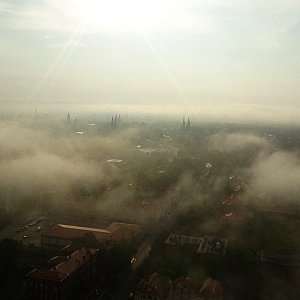 Dzięki AnTonio mamy okazję co jakiś czas podziwiać nasze miasto z lotu ptaka. Dzisiaj prezentujemy Legnicę budzącą się do życia, osnutą porannymi mgłami.