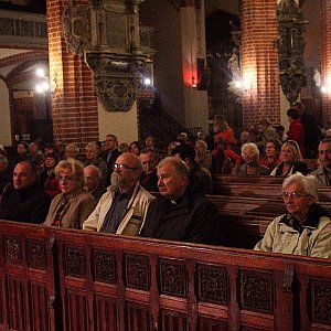 Podczas koncertu wystąpili: specjalizująca się w śpiewie gregoriańskim Mulierum Schola Gregoriana Clamaverunt Iusti, Paweł Gusnar (saksofon), Emilia Dutkiewicz (na zdjęciu obok -narratorka i autorka koncepcji programu) oraz Michał Sławecki (dyrygent, dyrektor artystyczny Legnickiego Conversatorium Organowego). Na organach zagrał Krzysztof Urbaniak.