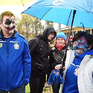 Morsowe towarzystwo, jako, że pierwsze zanurzenie zaplanowało w przeddzień Halloween, solennie się do niego przygotowało dbając o odpowiedni image. Strzygi, wiedźmy i upiory weszły więc do zimnej wody kąpieliska Kormoran śpiewając przy tym kankana, szkoda, że zatańczyć nie mogli...