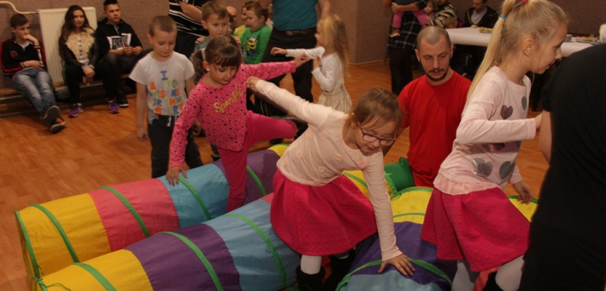Później przyszedł czas na prezenty. Zanim jednak dzieci je dostały, spędziły czas na zabawie z balonami i spacerom przez magiczny tunel.