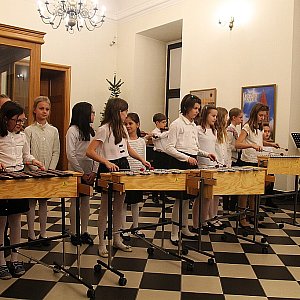 5. Zespół smyczkowy (skrzypce, wiolonczele z kl. II, III i IV OSM i SM I st.) w składzie: Lena Podulka, Maja Sieprpina, Karolina Zdanowicz, Karolina Ćwiertnia, Natalia Teicher, Anna Lipiec, Adrianna Turek, Natalia Bylica, Julia Buczkowska. „Anioł pasterzom mówił”, „W żłobie leży” – przygotowanie Bożena Rodzeń – Jarosz i Renata Piskórz.