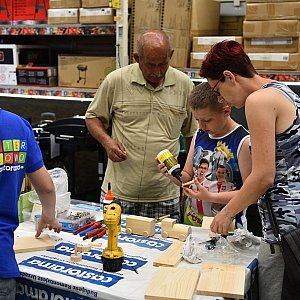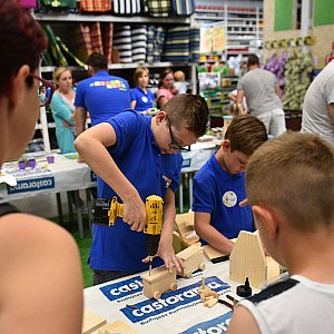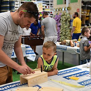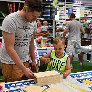 -Dzieci świetnie się bawią. Nie zawsze mają możliwość robić t z rodzicami. Dzisiaj my im tę możliwość stworzyliśmy. Niektórzy po raz pierwszy mają w dłoniach młotek czy wkrętarkę, ale doskonale sobie radzą – mówi Bartosz Urbański z Castoramy. – Wszystko co dzisiaj stworzą, będą mogli zabrać do domu.
