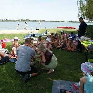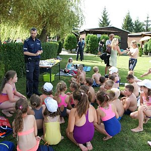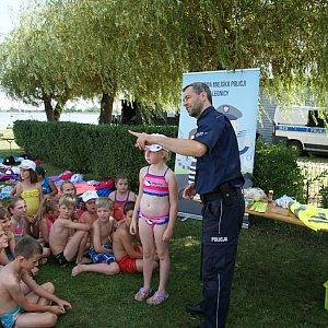 Legniccy policjanci spotkali się z uczestnikami półkolonii w Kunicach w ramach akcji profilaktyczno – edukacyjnej pod hasłem „Kreci mnie bezpieczeństwo nad wodą”.