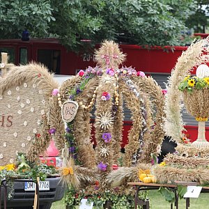 Tradycją jest, że każda wieś z tereny gminy plecie wieniec dożynkowy. Cudne rękodzieła cieszą oczy. Dużo trudu musiała sobie zadać komisja żeby wybrać najpiękniejszy.