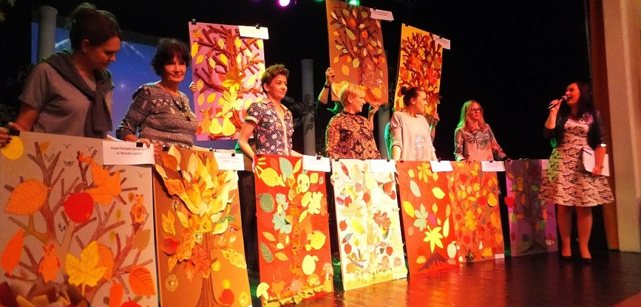 Tym razem jednak przegląd rozpoczął się od części praktycznej, która pokazać miała zdolności manualne uczestników imprezy. Jako, że jesień nastała zadaniem było wykonanie „jesiennego drzewa marzeń”. Drzewa były więc piękne, kolorowe i pełne marzeń twórców. Po ich zaprezentowaniu na cenie zaprezentowali się wszyscy biorący udział w przeglądzie.
