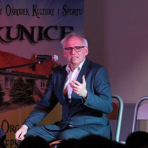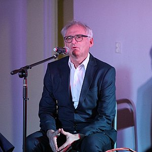 Krzesimir Dębski jest potomkiem Kresowian. Jego dziadkowie i rodzice pochodzą z Kisielina. Podczas pogromu Polaków w 1943 roku ojciec artysty został ranny, a jego dziadkowie Leopold i Anisja Dębscy zostali zamordowani. Zbrodnie ukraińskich nacjonalistów, których ofiarami byli członkowie rodziny Krzesimira Dębskiego, do dziś nierozliczone, stały się impulsem do napisania książki „Nic nie jest w porządku. Wołyń moja rodzinna historia”. Tę uczestnicy spotkania mogli nabyć po spotkaniu podobnie jak książkę kucharską Anny Jurksztowicz. Obie cieszyły się wielkim powodzeniem i niestety nie wszystkim udało się wejść w ich posiadanie. Małżeństwo artystów wróci do nas późną wiosną i z pewnością przywiezie ze sobą literaturę i muzykę, której podczas poniedziałkowego wieczoru także nie zabrakło.