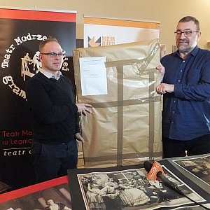 Jacek Głomb, dyrektor Teatru Modrzejewskiej przekazał na ręce Marcina Makucha, dyrektora Muzeum Miedzi, zbiór dokumentów pochodzących z radzieckiego okresu w historii legnickiego teatru.