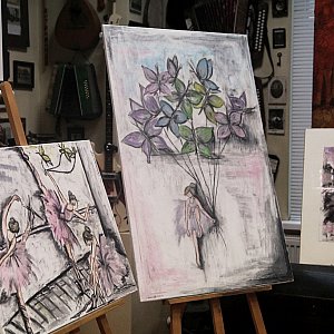 Rysuje pastelą olejną. Na wystawie w klubie „Agatka” znalazły się baletnice, lekkie, zwiewne, otoczone rojami motyli. Adekwatne do zbliżającej się wiosny.