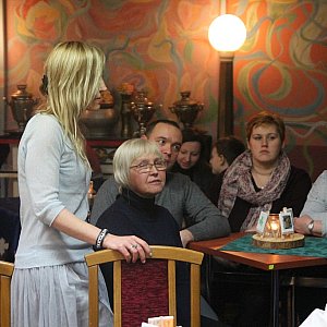 Monice Czyczerskiej towarzyszył Piotr Chabecki, stary przyjaciel jeszcze ze szkolnych lat. Pokazał piękne świeczniki, wykonane własnoręcznie z metalu. Płomienie płonących w nich świec, w połączeniu z muzyką irlandzką przywołały spaniały klimat i podkreśliły go, a opowieści Moniki same płynęły do uszu słuchaczy.[FOTORELACJA]13995[/FOTORELACJA]