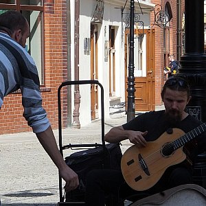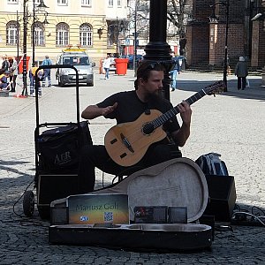 W Legnicy znalazł sobie miejse przed jednym z największych centrów handlowycy. Legniczanie odbierają muzyka bardzo pozytywnie. Zatrzymują się wrzucają pieniądze do futerału od gitary.