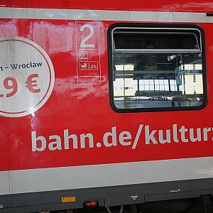 Legnica nic z tego pociągu nie ma. A powinno byc tak : od Żagania rozdawane ulotki w j.niemieckim o Legnicy , pod dworcem kolejowym autobus City Tour ( np. te małe z linii nocnych MPK), objazd po Legnicy ( 2-3 trasy) z przewodnikiem ( PTTK, OSiR) , powrót na dworzec i dalej do Wrocławia na tym samym bilecie KD. Włodarze pomyślcie aby zachęcić Berlińczyków do wysiadania w Legnicy.