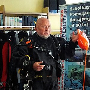 Szef „Pinotera”, Wiesław Świder, który jest także wytrawnym płetwonurkiem, opowiedział też o historii nurkowania i sprzęcie jaki jest niezbędny do uprawiania turystyki podwodnej. Sam sprzęt również pokazał uczestnikom spotkania. Chętni mogli zobaczyć, dotknąć i przymierzyć, a także uzyskać odpowiedzi na pytania dotyczące zarówno ważkich tematów poruszonych podczas spotkania i sportu jakim jest nurkowanie.