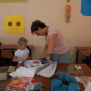 Pracując przy wykonywaniu nietypowych strojów, zdobywali wiedzę na temat segregacji śmieci, zajęcia odbywały się bowiem w scenografii dydaktycznej wykonanej przez Janinę Dąbrowską.