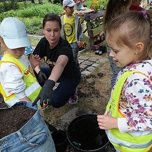 Do wyboru były kwiaty i warzywa, które można było posadzić w nietypowych „doniczkach”. Posłużyły za nie małym ogrodnikom oprócz skrzynek stare buty i spodnie. Kompozycje z kwiatów i warzyw prezentowały się imponująco. Prawdziwy efekt jednak zobaczyć będzie można dopiero za kilka tygodni, kiedy rozrosną się i zakwitną oraz wydadzą owoce.