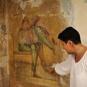 Malowidła pokrywają prawie wszystkie ściany pomieszczenia, jest człowiek żaba, są pnącza wijące się po ścianach. Część niestety została zniszczona, najprawdopodobniej przez wodę.