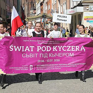 Już po raz 21. przeszedł ulicami Legnicy barwny korowód, w którym zaprezentowało się ponad trzystu artystów biorących udział w tegorocznym Festiwalu Folklorystycznym „Świat pod Kyczerą”.
