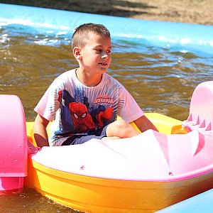 Pogoda, jak na życzenie, nie zawiodła. Słoneczny dzień łagodziły ufundowane przez organizatorów lody, małe łasuchy częstowane były watą cukrową, popcornem, napojami i słodyczami, których nie zabrakło dla nikogo. Muzykę, dziecięcy gwar i śmiech słychać było przez cały czas trwania spotkania. Dzieci szalały podczas zabaw, konkursów i innych, przygotowanych specjalnie na ten dzień atrakcji. Wspaniale było patrzeć na radość, jaką wywołała coroczna inicjatywa wspólnej zabawy dla dzieci z Legnickiego Pola i okolicznych miejscowości.