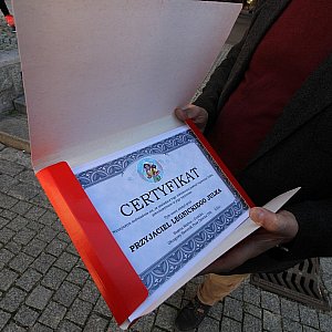 Wręczeniem pamiątkowych certyfikatów i drobnych upominków zakończył się cykl spacerów szlakiem legnickiego Julka. Ostatni z trzech spacerów zakończył się na dziedzińcu Akademii Rycerskiej.