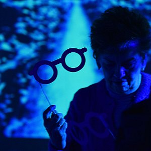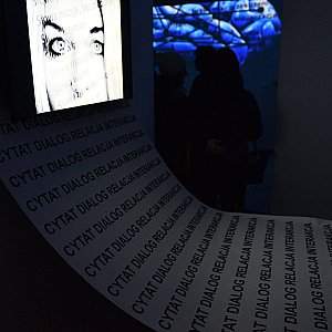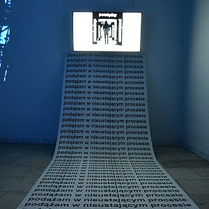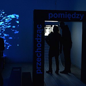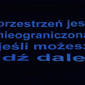 Słowo stało się drogowskazem dla odwiedzających wystawę Małgorzaty Kazimierczak. Słowo i światło, niebieskie , rozpraszające się w półmroku lecz nie rozpraszające uwagi widza, który podążając wyznaczoną rzez autorkę ścieżką, sam staje nieostrzeżenie się częścią jej projektu.