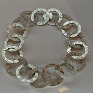 Paweł Kaczyński wykonał srebrną bransoletę. Jak na ten rodzaj biżuterii, ma kształt dość nietypowy, jest kwadratowa.