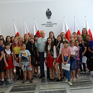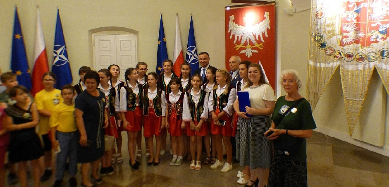 Dzieci z legnickiego Okręgu Towarzystwa Przyjaciół Dzieci wypoczywające wspólnie z członkiniami chóru „Odrodzenie” z partnerskiego miasta Drohobycza na Ukrainie, gościły w pałacu prezydenckim.