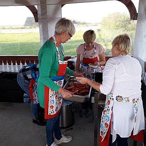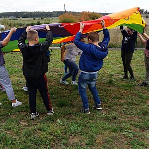 Nie zabrakło wspólnej zabawy przy ognisku, pieczenia kiełbasek i ziemniaków. Na wszystkich czekał poczęstunek - były pierogi ruskie i bigos przygotowany przez panie z Koła Gospodyń Wiejskich „Rosochatki”. Ostatnim akcentem tego jesiennego spotkania pod chmurką była się zabawa taneczna z DJ-em SieLą.