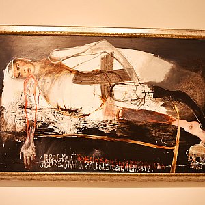 - Najmniejszym formatem i rysunkiem Henryka Cześnika, jaki zobaczymy na wystawie Niebezpieczne zabawy jest praca na paragonie z restauracji, który Autor potraktował – zapewne w oczekiwaniu na kelnera – swą nieodłączną wizją świata odczłowieczonego, kalekiego, surowego, przekreślając wspomnienie cytrynowej tarty obsesyjną refleksją o brzydocie, przemijaniu i niepewności wszelkich absolutów. Rysunki na kopertach, kawałkach kartonów, kolaże – zdawkowe, nieduże, zdradzające rozpasanie kreski, wizji i oryginalne potraktowanie tworzywa, dopełniają wystawy zdominowanej przez wielkie formaty i prace na prześcieradłach. Ciekawie zaserwowane drobne przejawy talentu, groteski, humoru dopełnią artystycznej uczty, po której może rozboleć sumienie” – opowiada Justyna Teodorczyk, dyrektorka Galerii Sztuki.