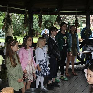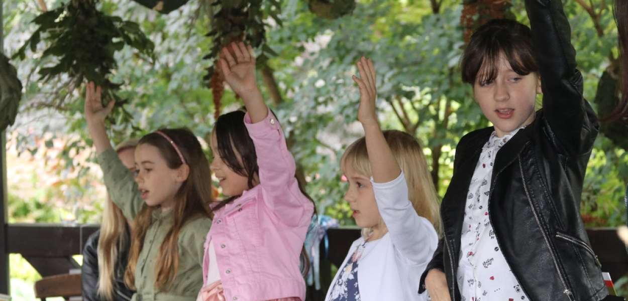 W palmiarnia i Mini Zoo została zaprezentowana ciekawa scenografia złożona z rdestu, suszu oraz plastrów drewna. Do wykonania dekoracji dzieci użyły technik, których nauczyły się podczas warsztatów florystycznych prowadzonych przez Monikę Kręcisz – Kozłowską i Ievgeniię Bivol w pracowni Flowers Ctrl. Ze względu na warunki pogodowe występ odbył się w udekorowanej altanie, która stała się alternatywną przestrzenią dla stworzonej sceny.[FOTORELACJA]17540[/FOTORELACJA]