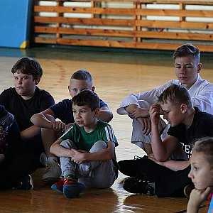 Powtórka materiału. Lwiątka łamią deski. Nauka łamania desek z wykorzystaniem desek wielokrotnego użytku, tarcz treningowych. Po wstępnym przygotowaniu dzieci będą łamały prawdziwą deskę sosnową.[FOTORELACJA]18906[/FOTORELACJA]