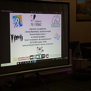 W czwartek 26 października w Gminnym Ośrodku Kultury i Sportu w Kunicach odbyło się ostatnie wydarzenie kulturalne z projektu „Znani i (nie)znani - ale utalentowani!” w ramach dotacji z programu” Działaj lokalnie” Polsko-Amerykańskiej Fundacji Wolności. Tym razem gościem była Beata Bąkowska, autorka książki „Kunice dawno temu….”.