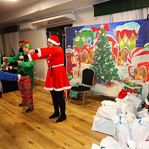 Zanim dzieci odwiedził Mikołaj, zabawiał je bałwanek Olaf i wspaniałe Śnieżynki, które zadbały, by dzieci się nie nudziły. Wielką niespodziankę sprawił Mikołaj, który wyskoczył z wielkiego pudła prezentowego. W prezencie za paczki otrzymał wspaniałe portrety przygotowane przez dzieci.